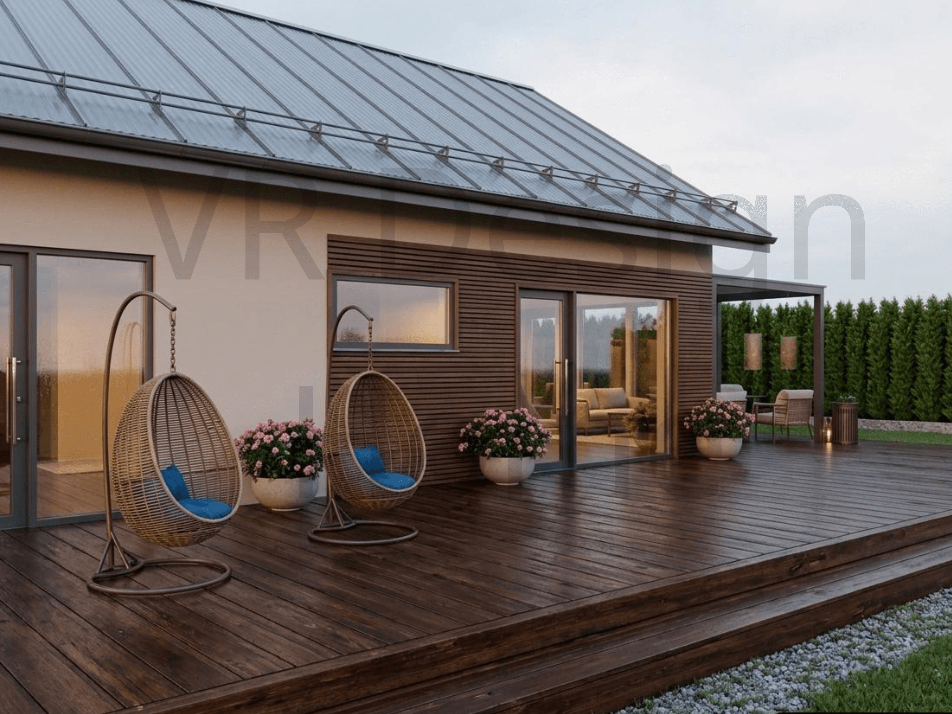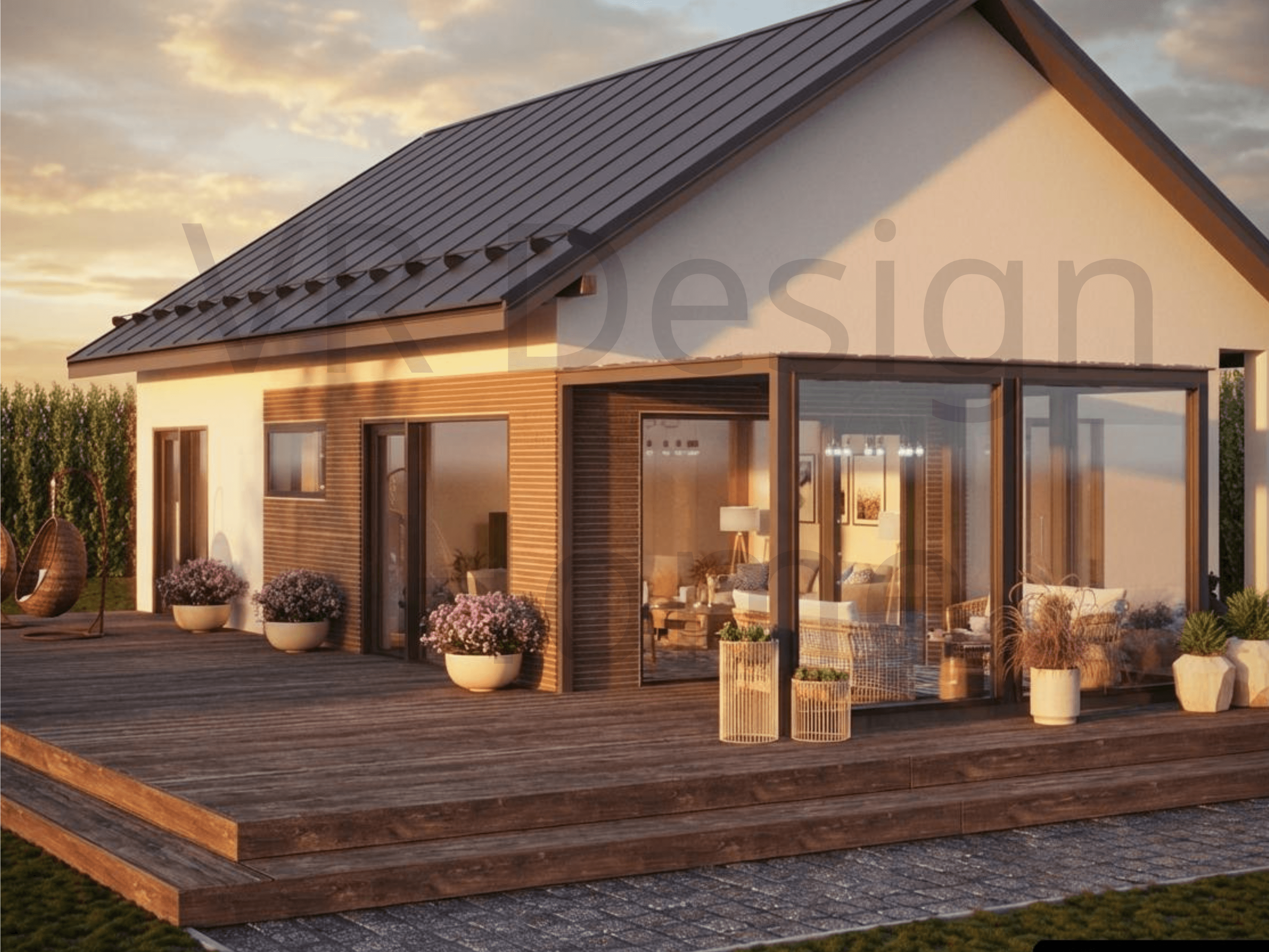 VR Home 1 — Современный дом с интерактивным 3D-проектом Площадь застройки: 94 м² | Жилая площадь: 75.3 м² | Срок строительства: от 4 месяцев О проекте Проект VR Home 1 — это воплощение рациональности и современного стиля. Компактный снаружи, но удивительно просторный внутри, этот дом идеально подходит для семьи, ценящей уют и функциональность. Мы разработали его с учетом климатических особенностей Калининградской области, используя проверенные временем материалы.
