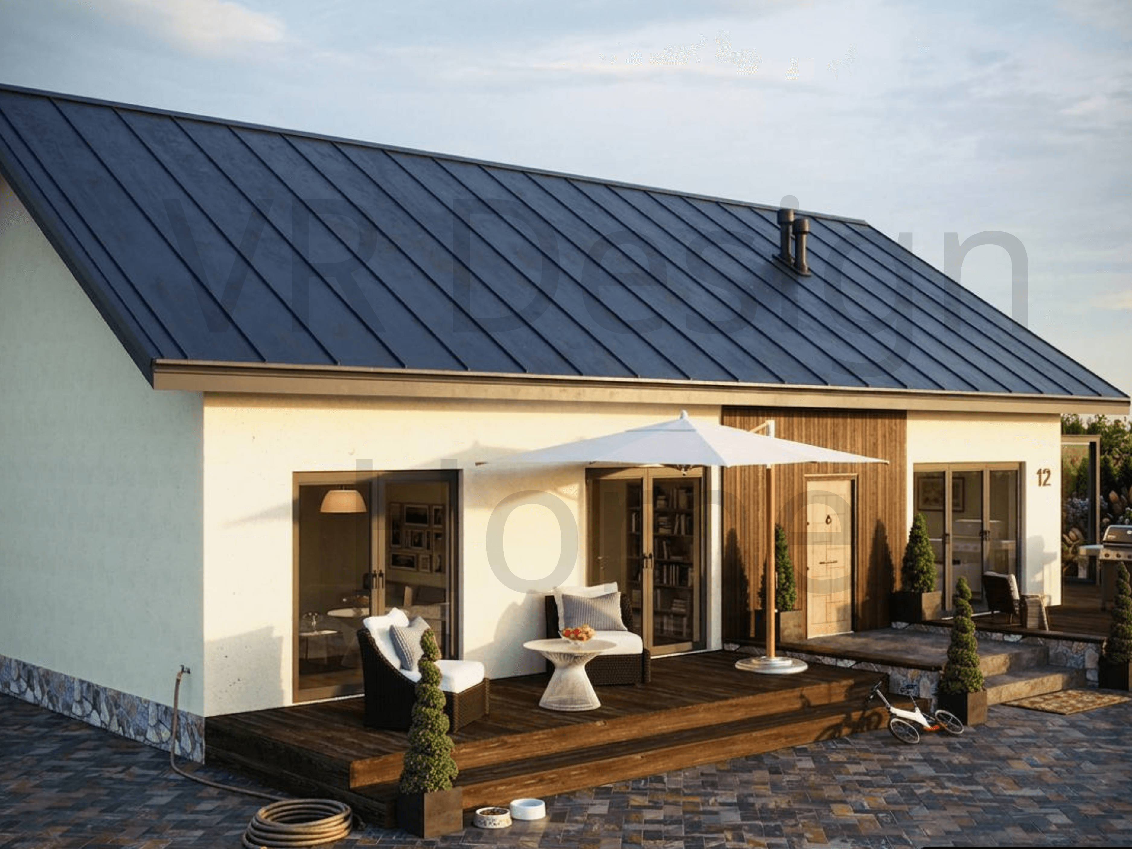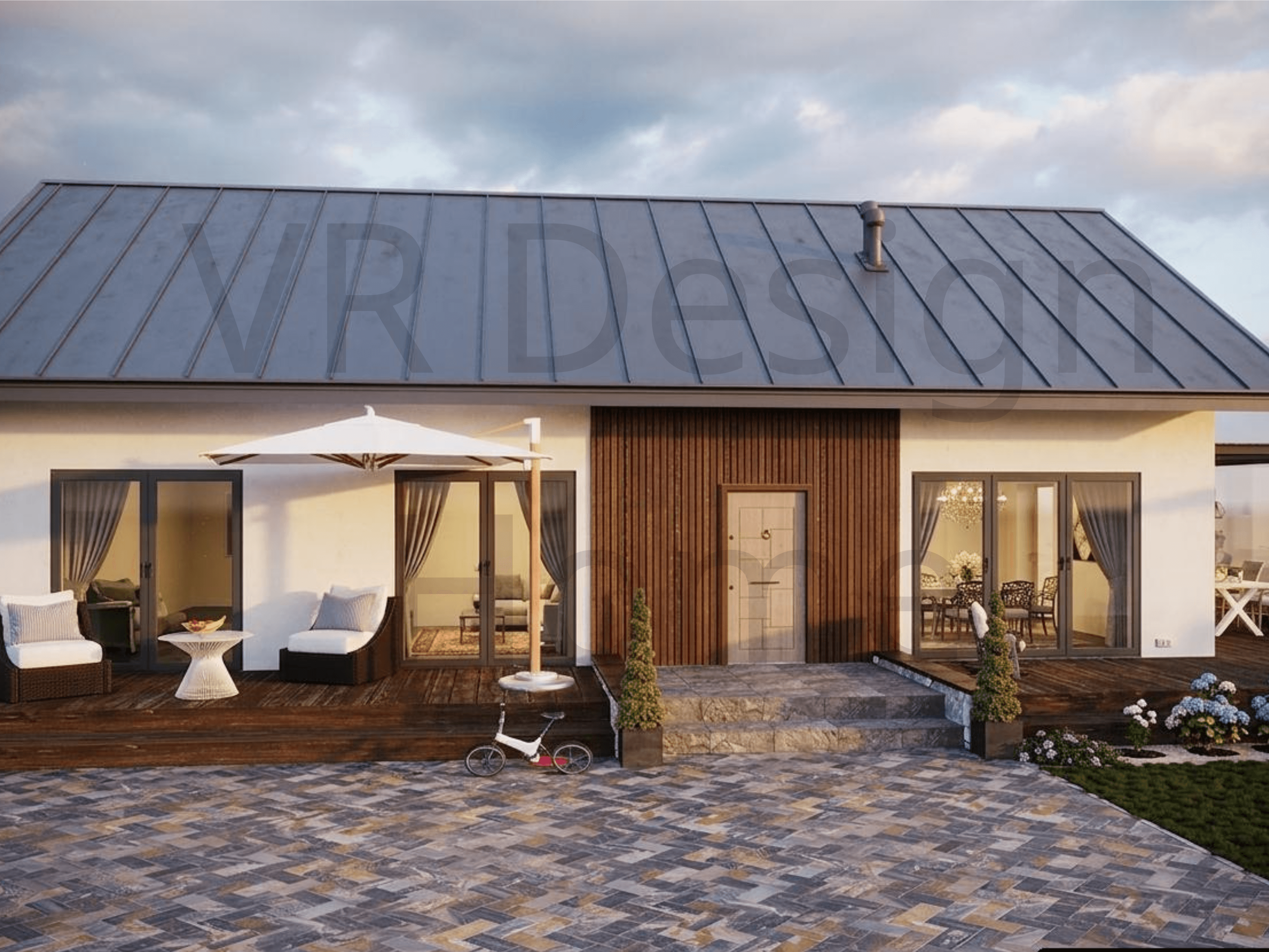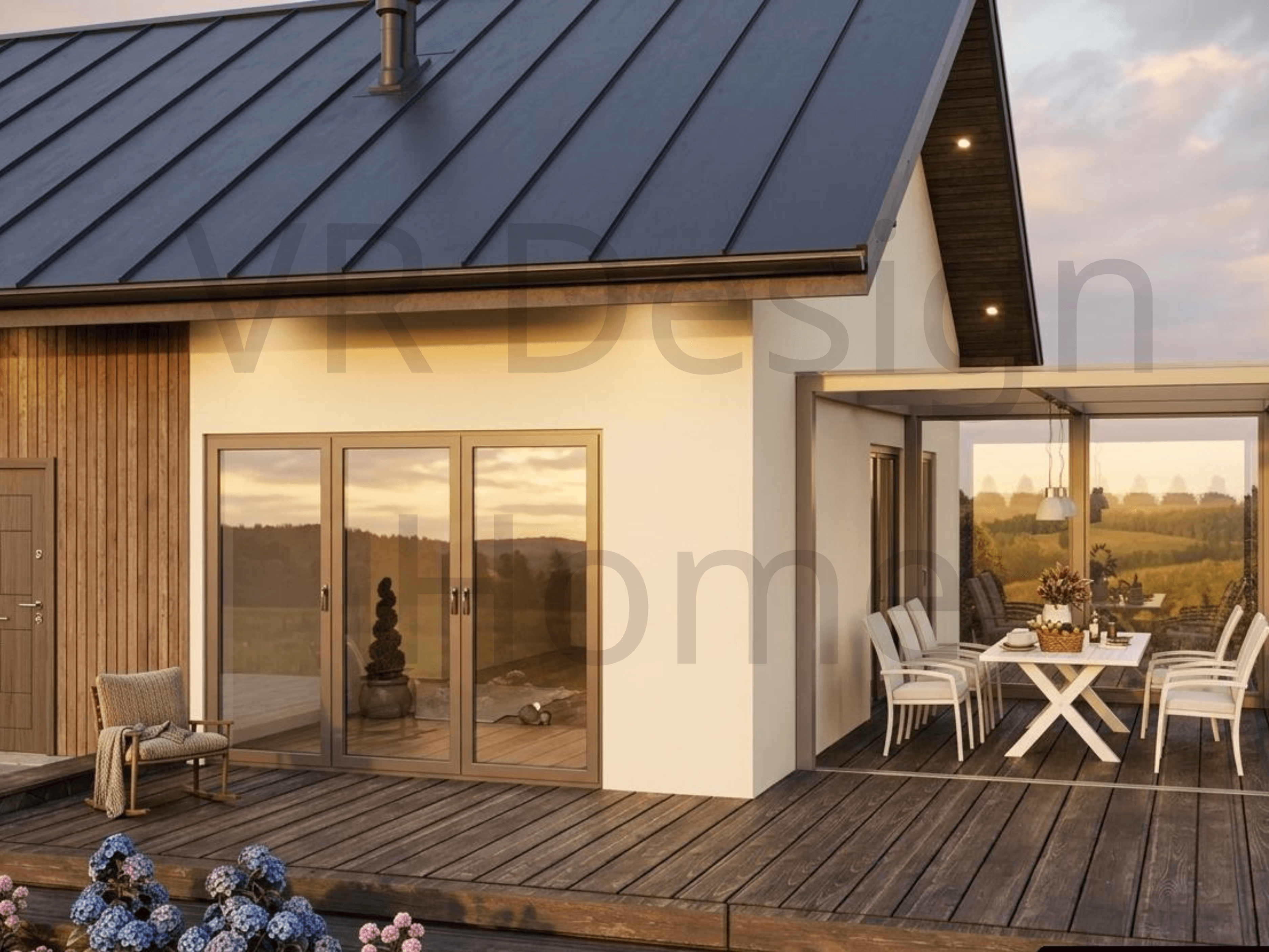 Представляем оптимальный семейный проект «VR House 2» (104.3 м²): Это дом, в котором нет лишних коридоров, но есть пространство для каждого. Современная архитектура и продуманная до сантиметра планировка делают его фаворитом среди калининградских семей. ПЛАНИРОВКА ДЛЯ КОМФОРТНОЙ ЖИЗНИ: Кухня-гостиная: Просторная зона с панорамным остеклением и выходом на будущую террасу. 3 изолированные спальни: Личное пространство для родителей и детей. Эргономика: Предусмотрены места под встроенные системы хранения.