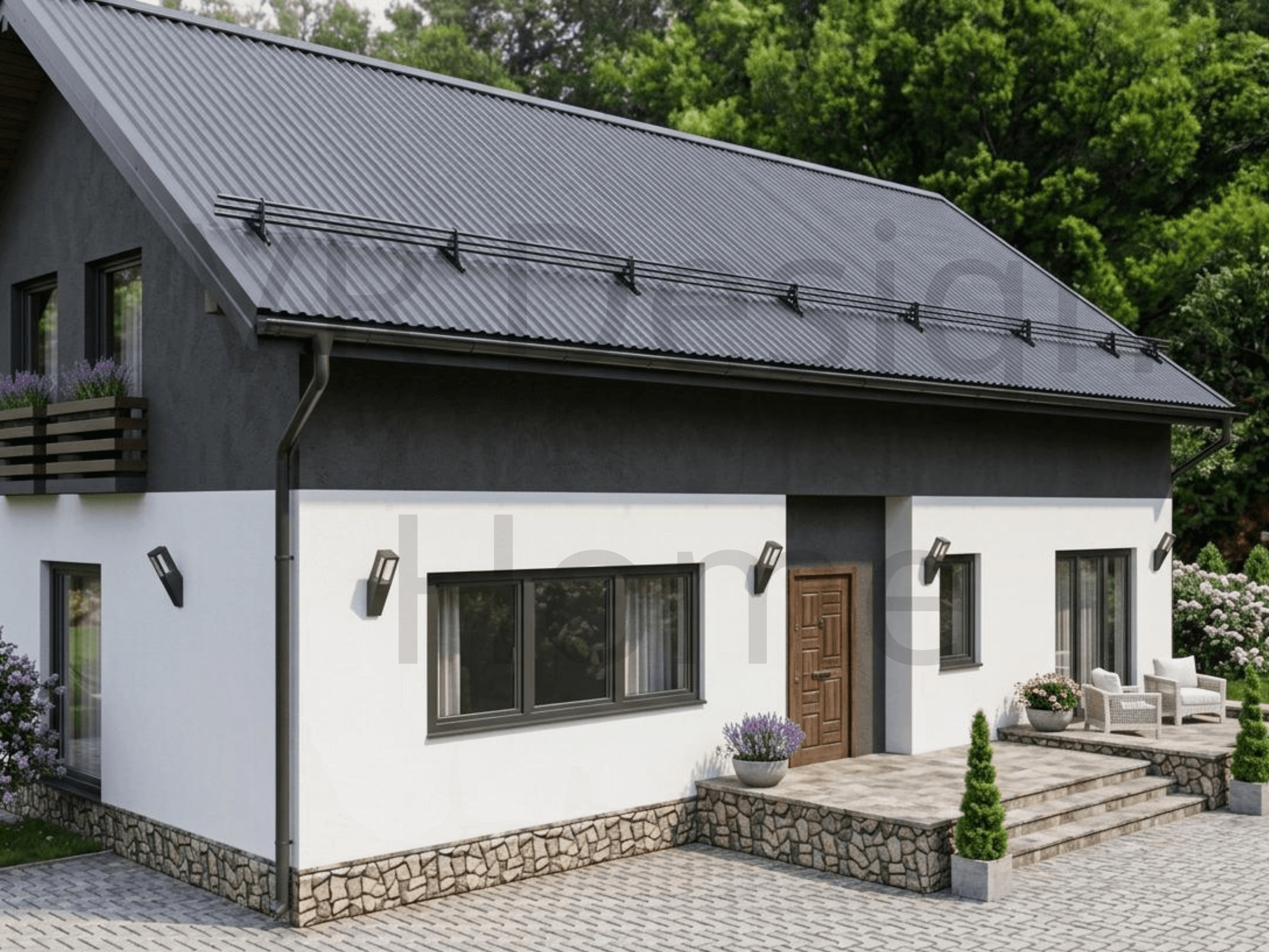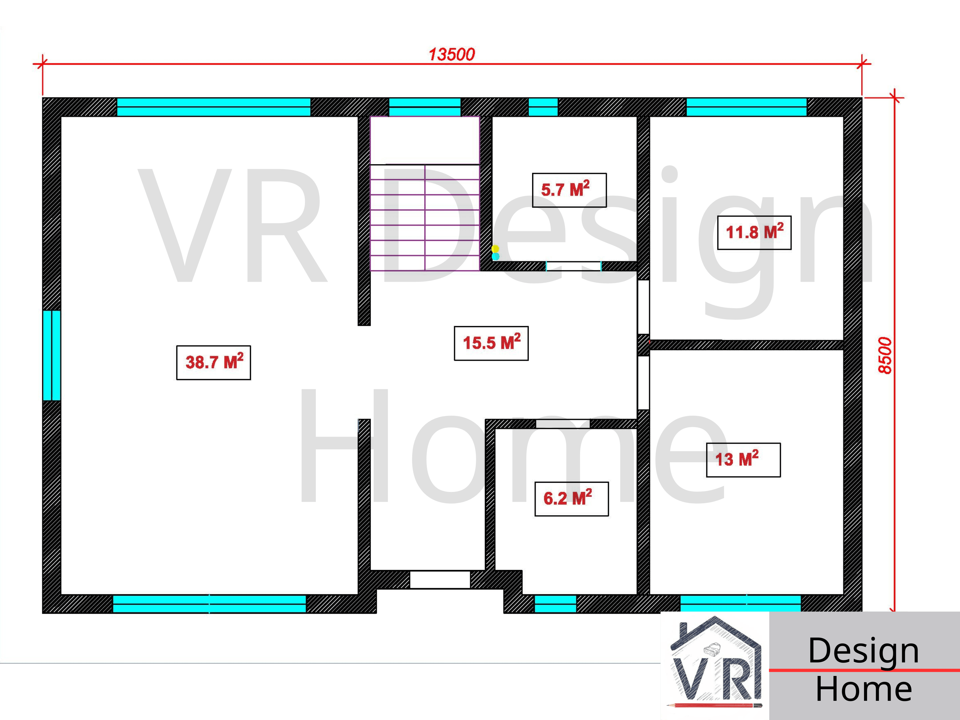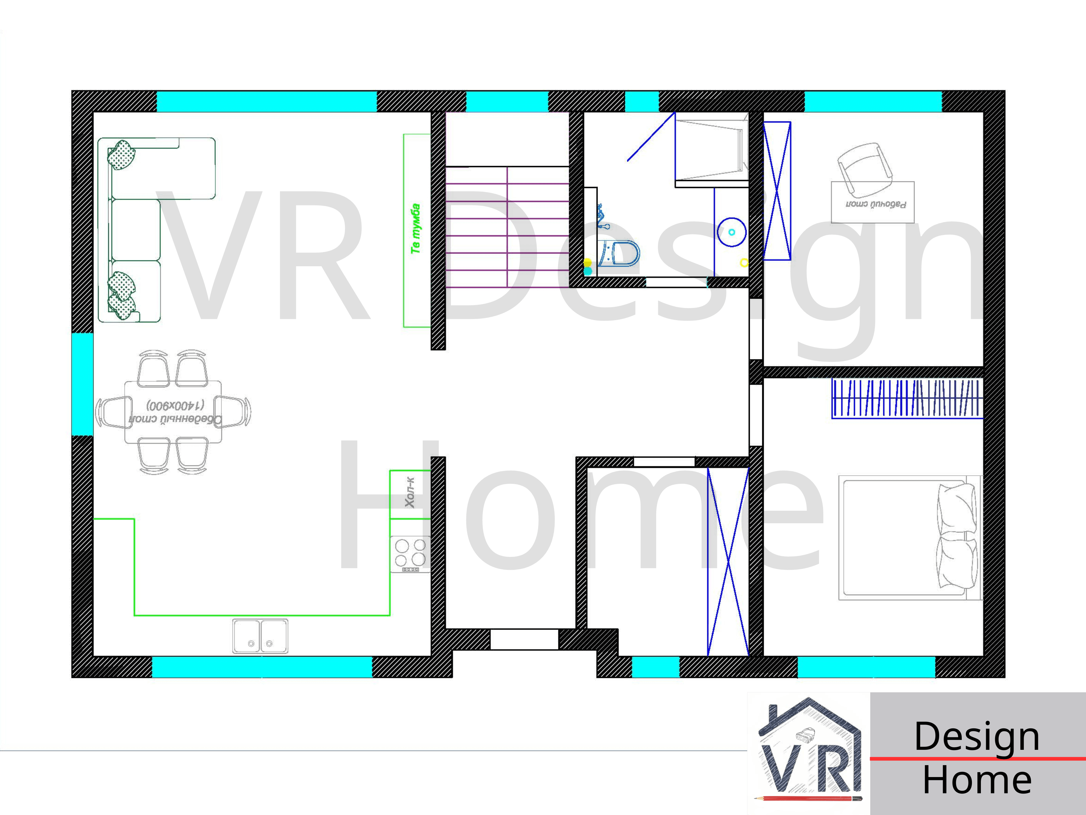 Проект VR House- 5 (184.2 м²) Дом 184 м² с 6 комнатами + Полный проект и Дизайн в подарок VR House- 5 — двухэтажный дом для тех, кому нужно много жилых комнат и открытое общее пространство. 184 квадратных метра полезной площади с рациональным зонированием. ПЛАНИРОВКА: Площадь застройки 114,7 м² * 1 этаж (91.2 м²): Кухня-гостиная 40 м² — единое пространство для отдыха и готовки. Кабинет для работы и отдельная гостевая спальня. Санузел, котельная и холл. * 2 этаж (93 м²): 5 полноценны[ спален. Большой семейный санузел.